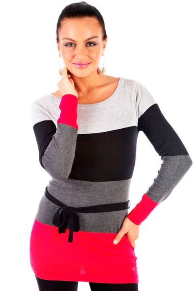 Теплый и яркий джемпер-туника с поясом в красно-серых тонах легко вольется в Ваш гардероб. приятная фактура ткани и облегающий крой придают тунике практичность и уют.